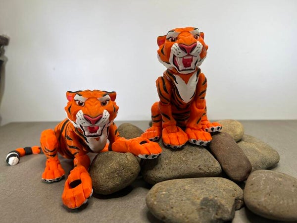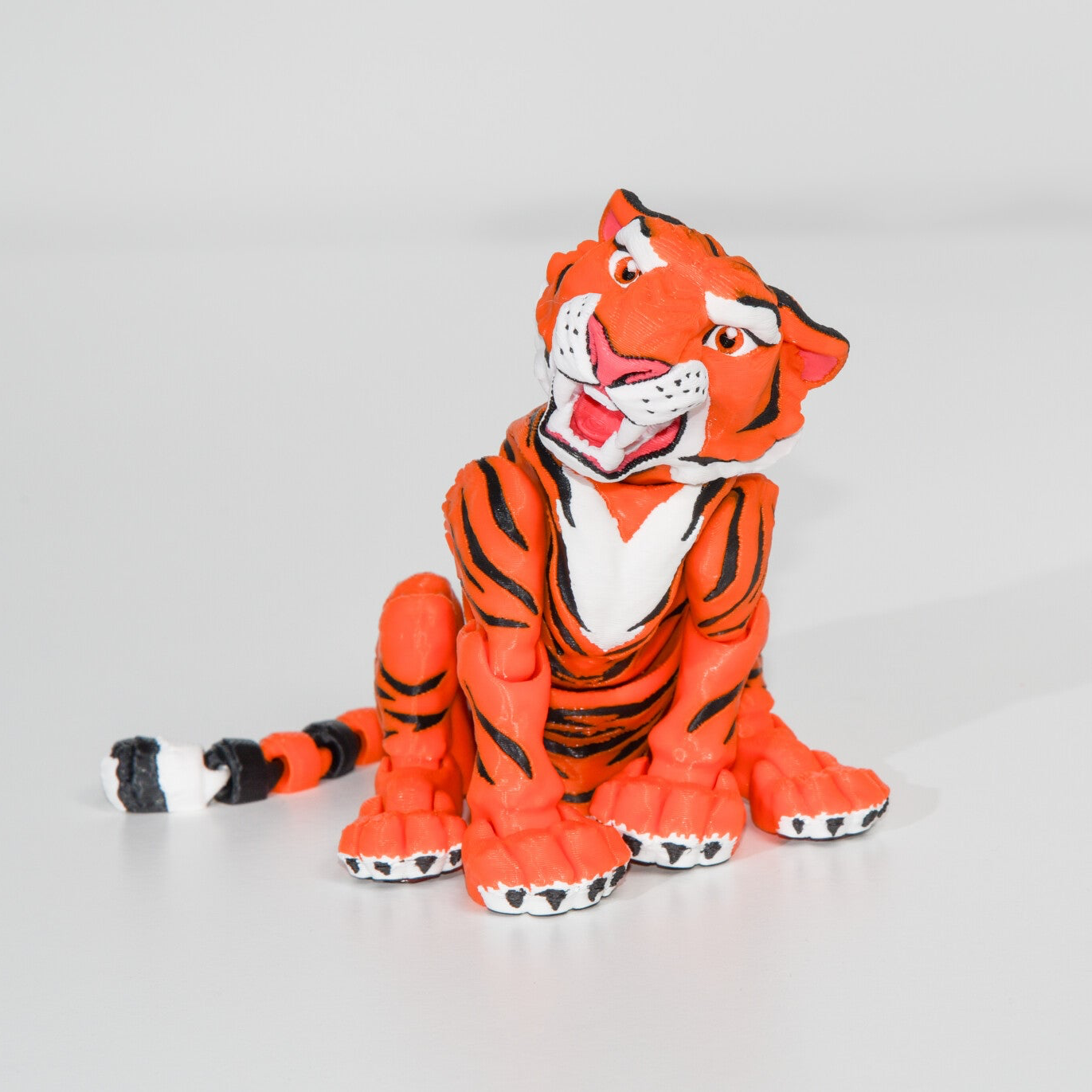 This tiger is made to be very lifelike. It is fully articulated, crafted to inspire hands-on interaction and sensory engagement. We 3D print and finish each piece ourselves from start to finish, ensuring a smooth, durable design that invites movement and fidgeting.