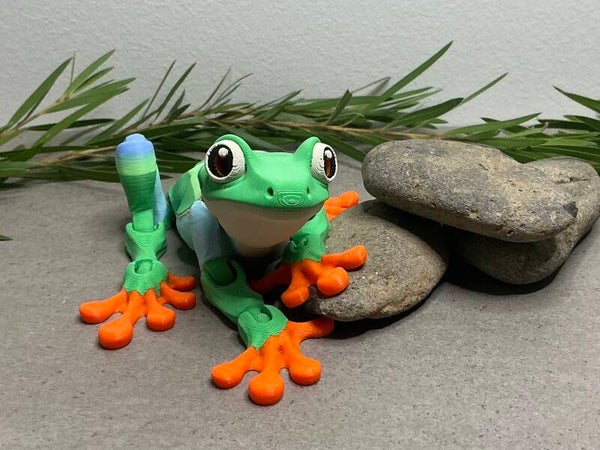 This frog is fully articulated and made to move like a real frog. It is crafted to inspire hands-on interaction and sensory engagement. We 3D print and finish each piece ourselves from start to finish, ensuring a smooth, durable design that invites movement and fidgeting.