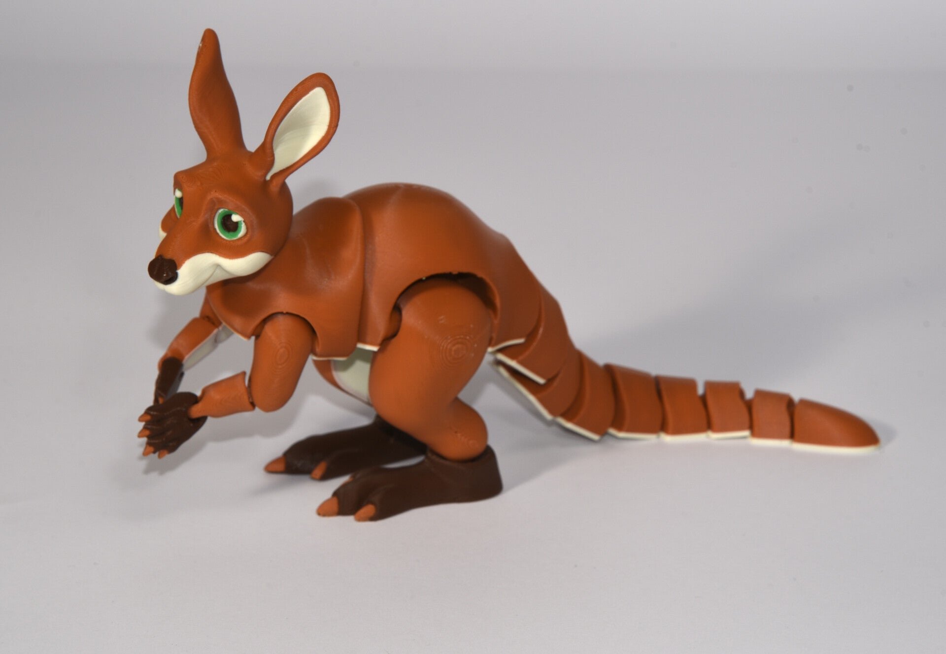 This kangaroo is fully articulated, crafted to inspire hands-on interaction and sensory engagement. We 3D print and finish each piece ourselves from start to finish, ensuring a smooth, durable design that invites movement and fidgeting.