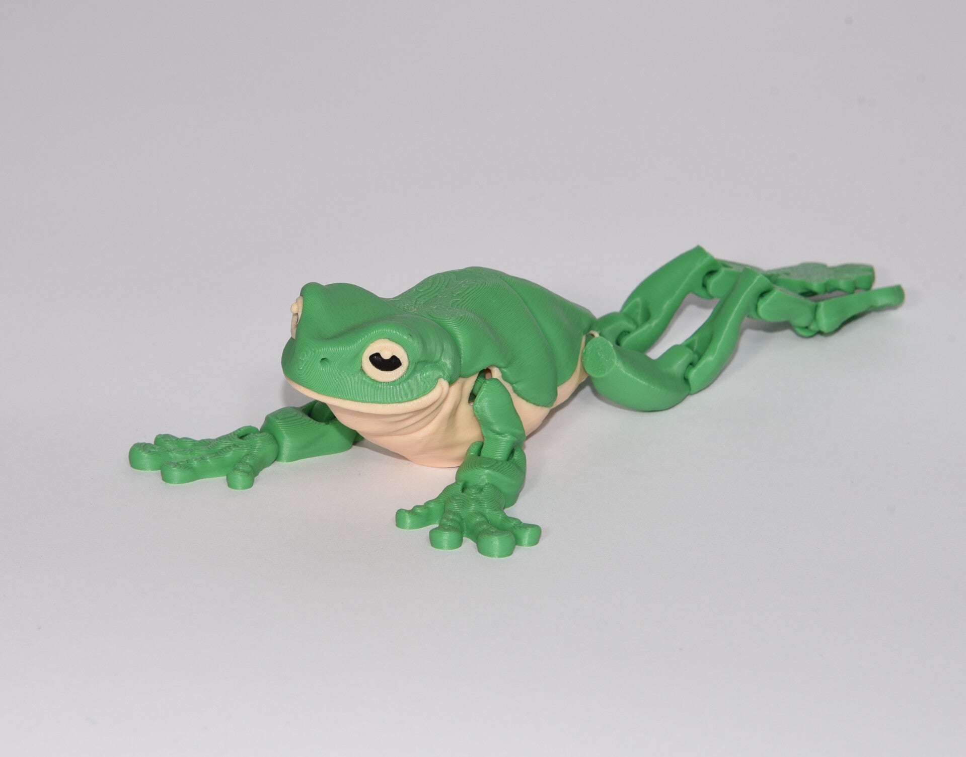 This green tree frog is fully articulated, crafted to inspire hands-on interaction and sensory engagement. We 3D print and finish each piece ourselves from start to finish, ensuring a smooth, durable design that invites movement and fidgeting.