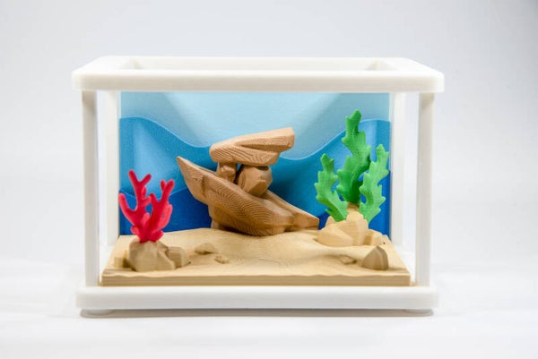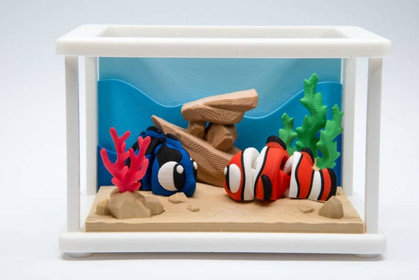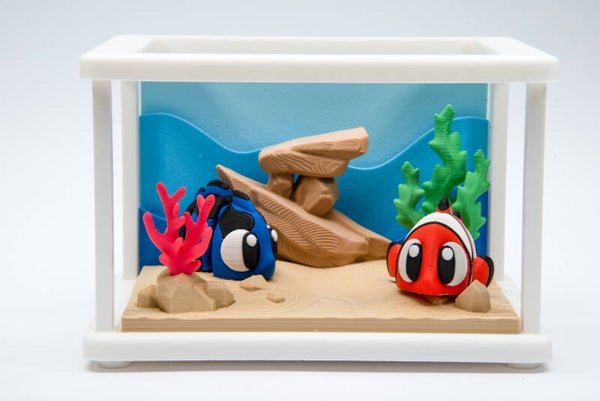 This tiny aquarium is complete with 2 mini fish (clown fish and blue tang), so you can have all the fun and none of the work. Each aquarium, and figurine is fully articulated, crafted to inspire hands-on interaction and sensory engagement. We 3D print and finish each piece ourselves from start to finish, ensuring a smooth, durable design that invites movement and fidgeting. Details