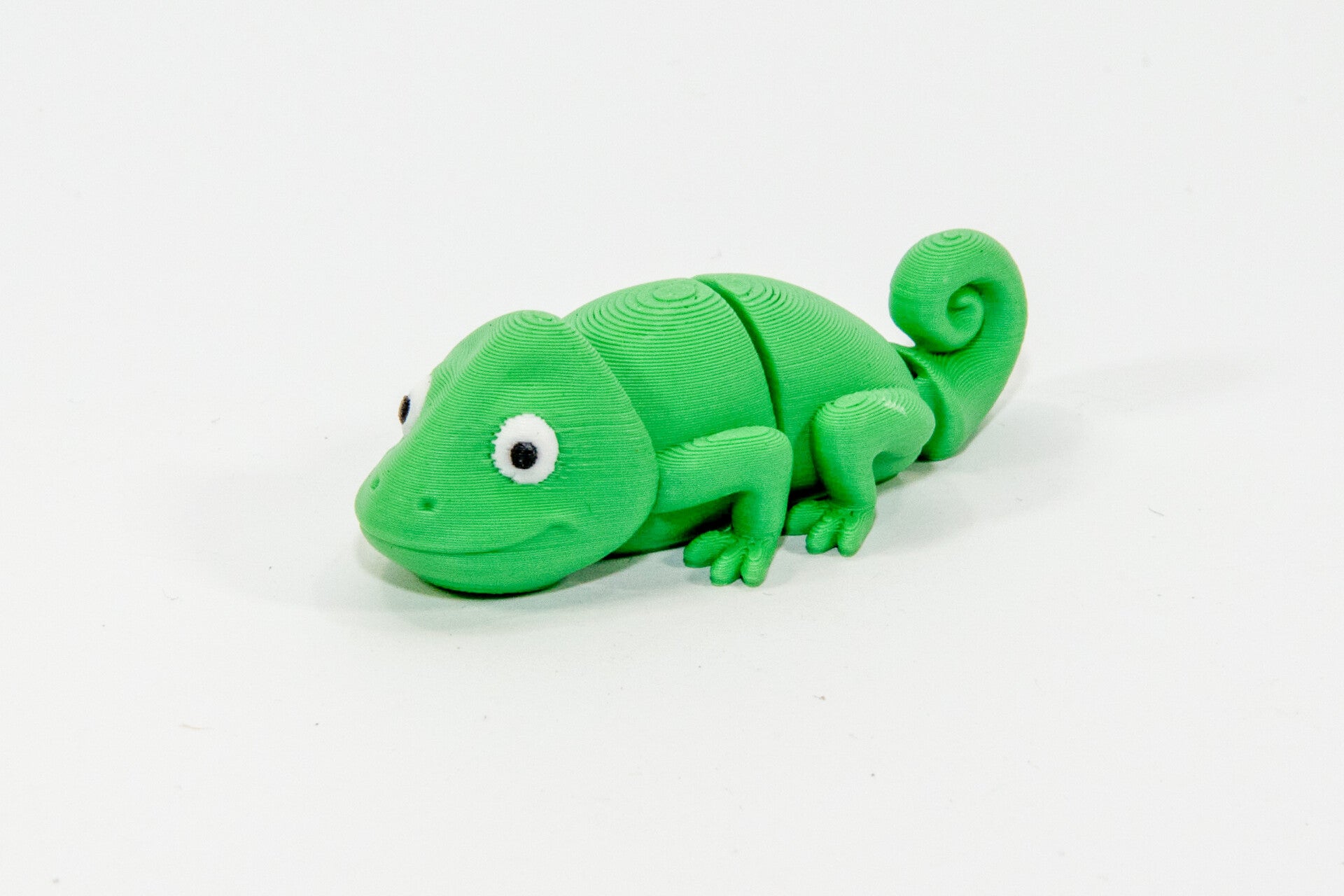 This mini chameleon is printed from start to finish by us here at Wattarah. We ensure a quality print with a smooth, durable design that invites movement and fidgeting. Photos are taken extremely close up so you can see details and layer lines. In person the layer lines aren’t always as noticeable, but will always be visible to some degree due to the nature of 3D printing.