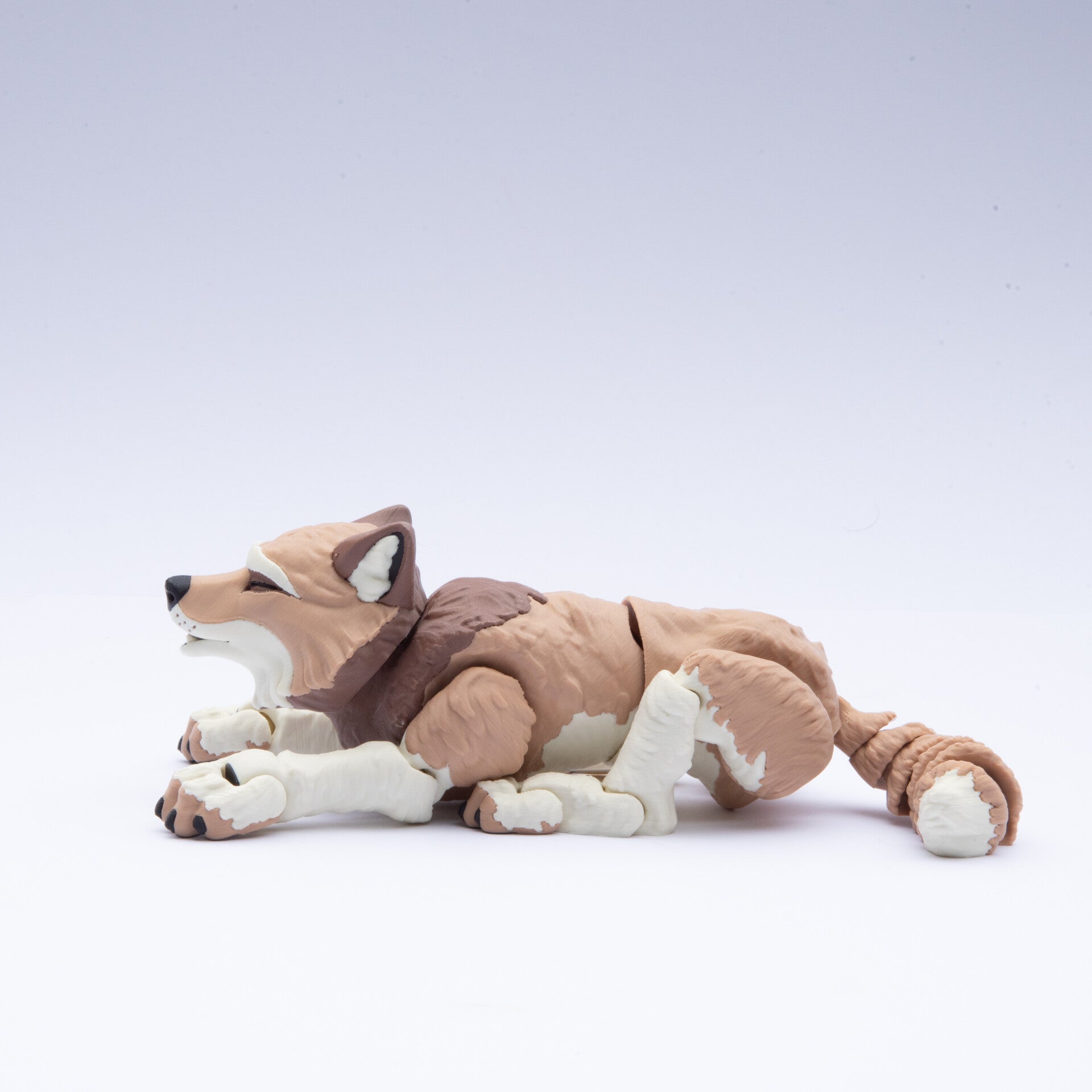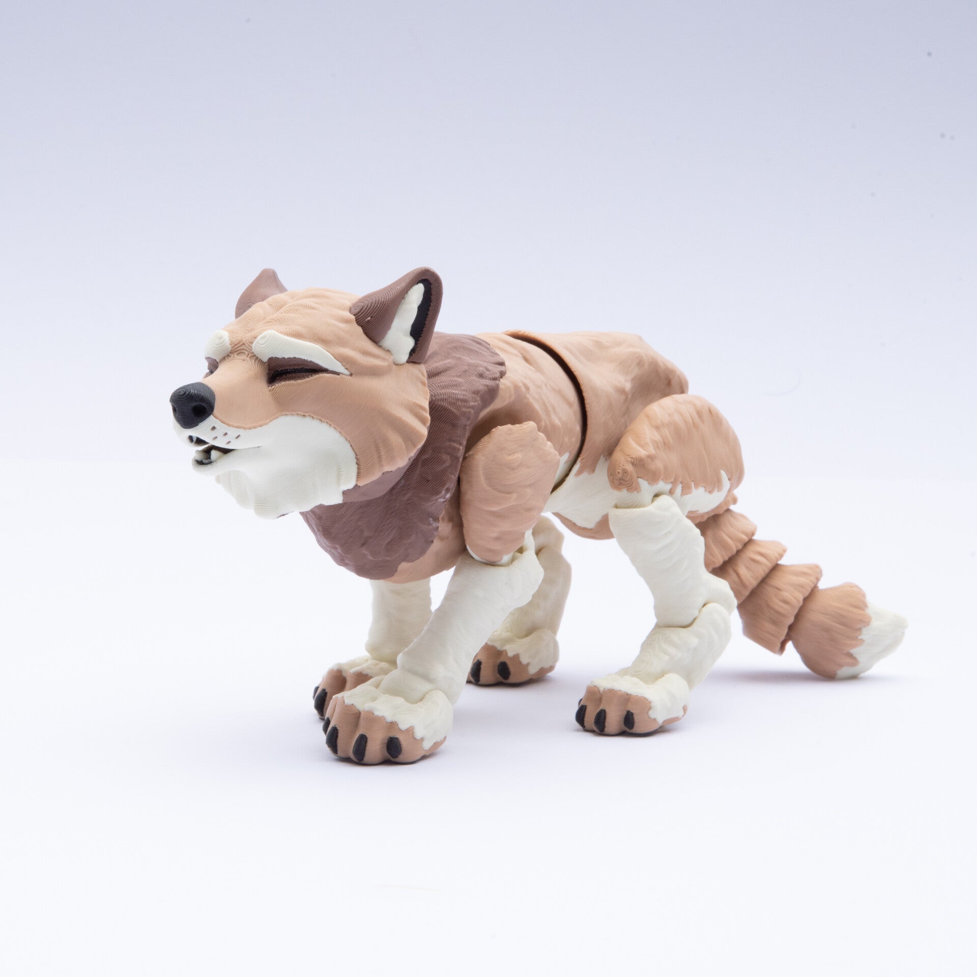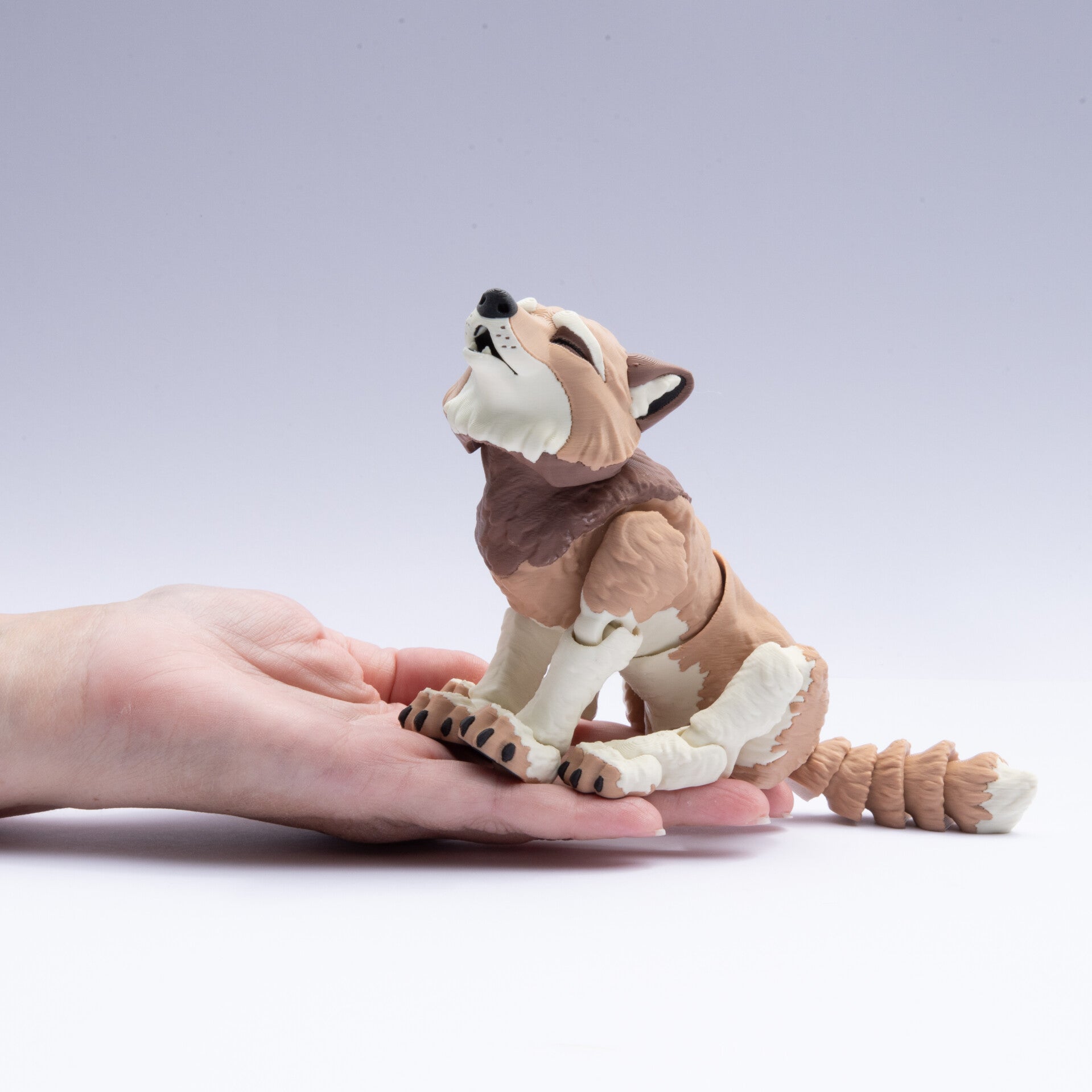 This realistic 3D printed howling wolf is a fully articulated animal with smooth jointed movement from head to tail, detailed fur texture and a sturdy, calming feel when handled. Printed by us here in Sydney, it appeals to kids who enjoy sensory play, teens and adults who use fidgets, families in the ND community and anyone who loves wildlife animals. Its gentle motion and expressive pose make it a unique handmade wolf for play, display or soothing fidget use.