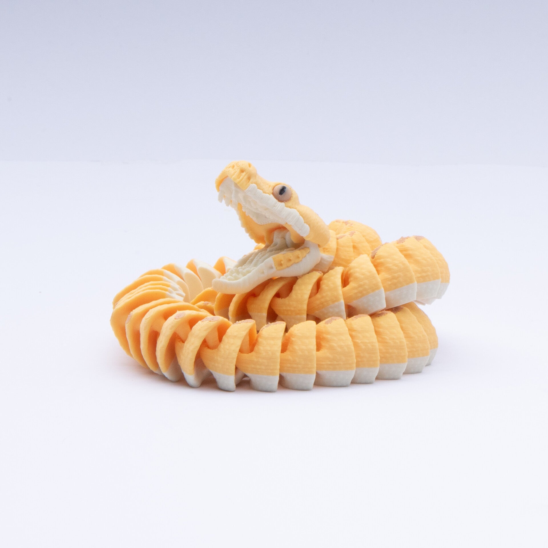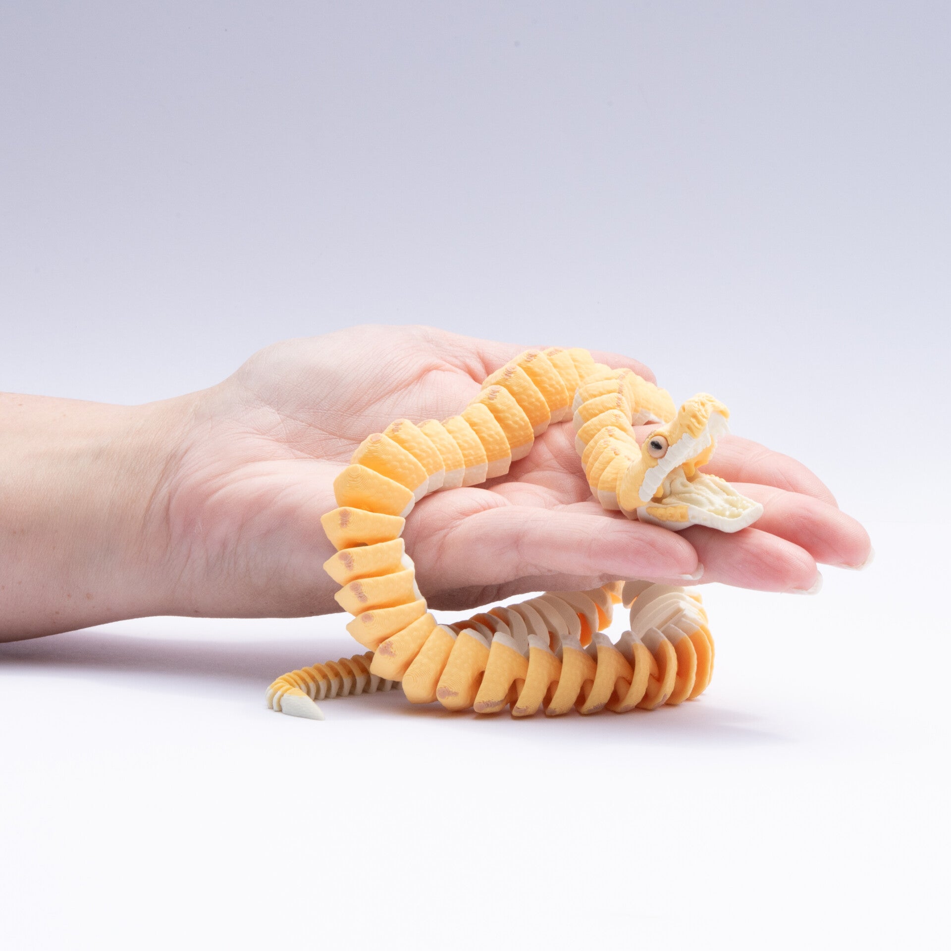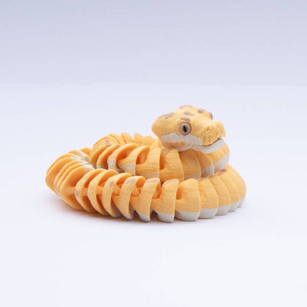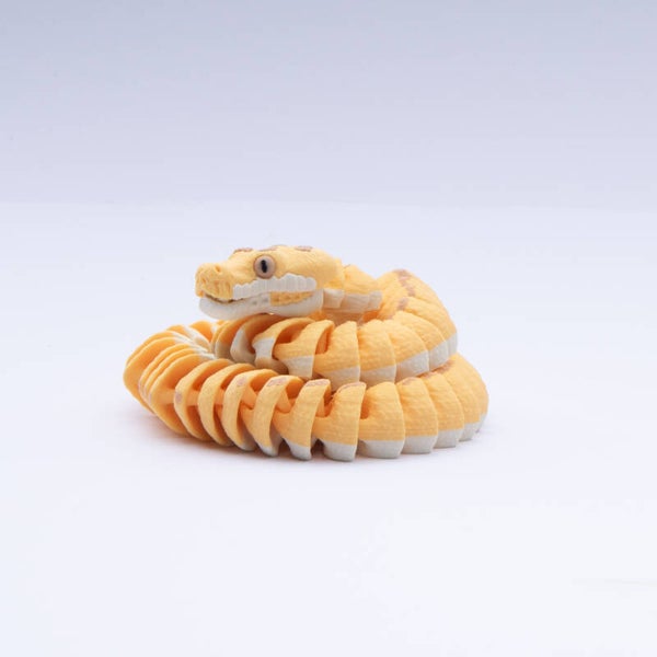 If you are searching for a truly unique gift that you cannot find in regular shops, this realistic 3D printed Baby Yellow Tree Python is a memorable choice. It has a flexible articulated body, detailed scale texture and natural colouring, all printed by us here in Sydney. It is fully assembled, lightweight and surprisingly relaxing to handle, making it perfect for anyone who enjoys unusual toys, handmade pieces or eye catching desk items.