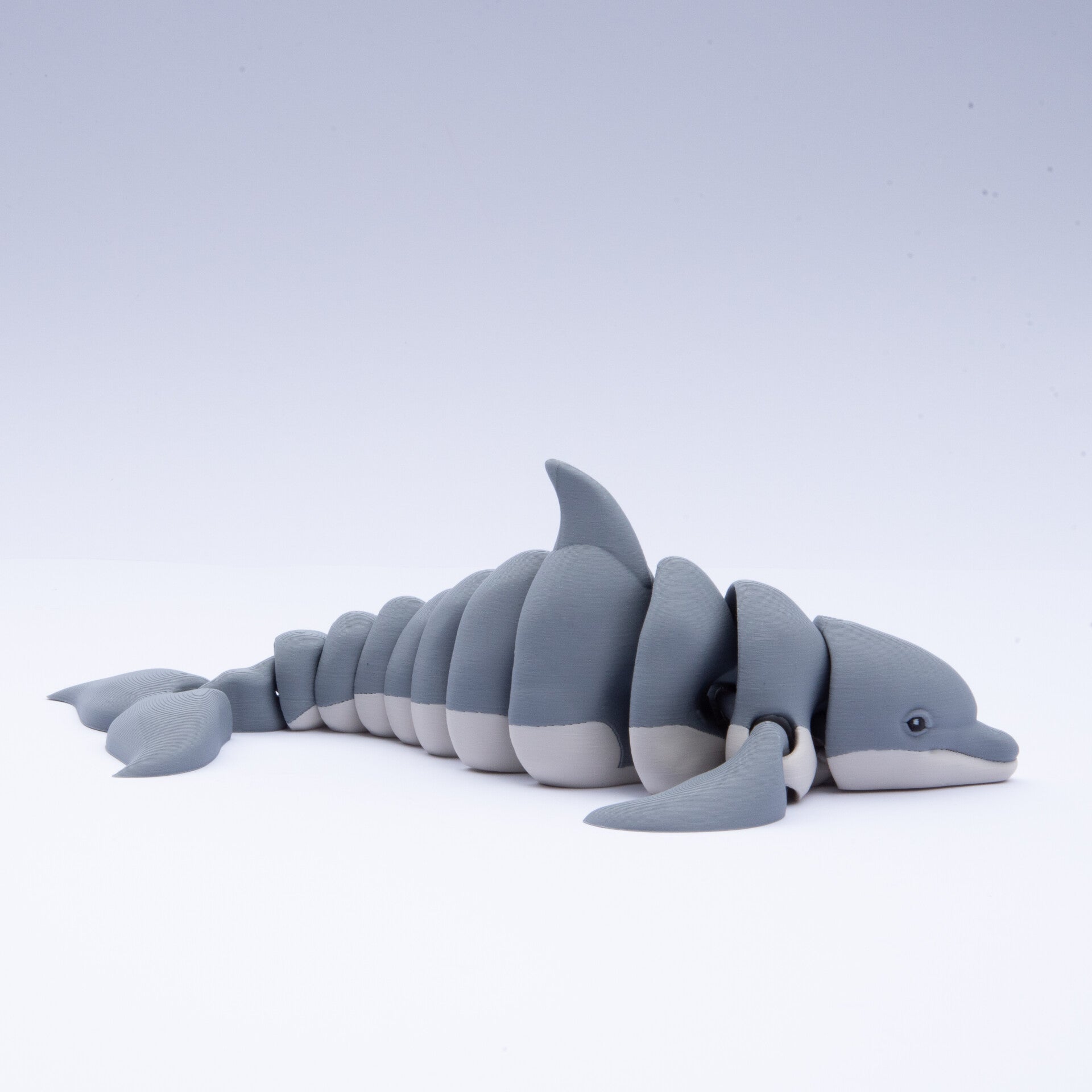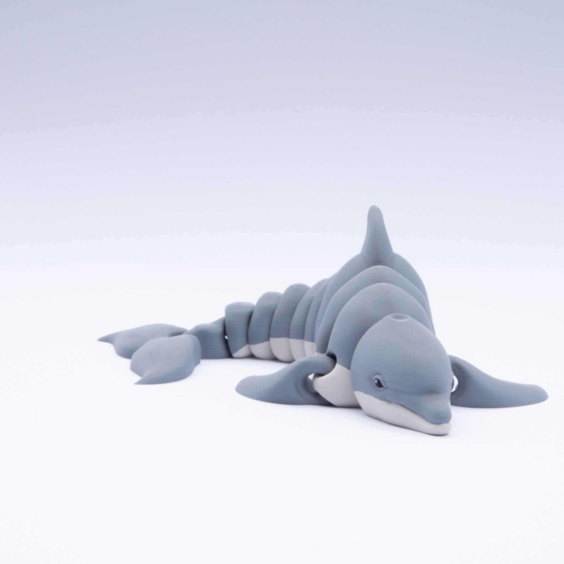 This articulated 3D printed dolphin has smooth segmented movement, a flexible calming feel and gentle realistic shaping that makes it an engaging sensory-friendly ocean animal toy. Printed by us in Sydney, it suits kids who enjoy tactile fidgets, neurodiverse children who benefit from soothing movement toys, and anyone who simply loves dolphins and marine animals. It is sturdy for play, relaxing to handle and makes a thoughtful unique gift.