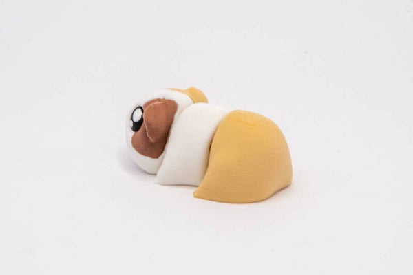 This little guinea pig measures approximately 6cm in length, from head to tail, and 2cm tall. Featuring a cute smile and creamy brown, white and brown patches brown body, it is 3D printed using eco-friendly PLA. The little guinea pig has articulating movement, for a great little wiggle and jiggle from head to tail. Great for sensory, fidget and desk pets.